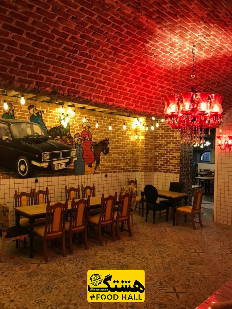 این رستوران سنتی دارای دو طبقه با دیزاین نوستالژی و تا حدودی عربی است، در طبقه اول میز و صندلی واقع شده و طبقه دوم کاملا سنتی طراحی شده است.