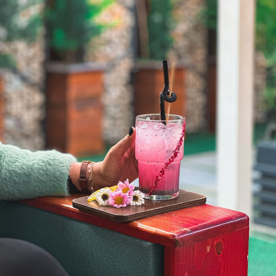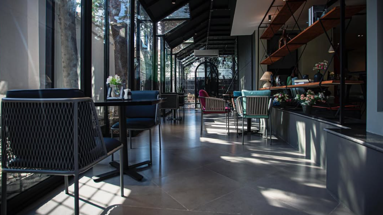فضای باز این کافه مانند باغی زیبا طراحی و دیزاین شده است.