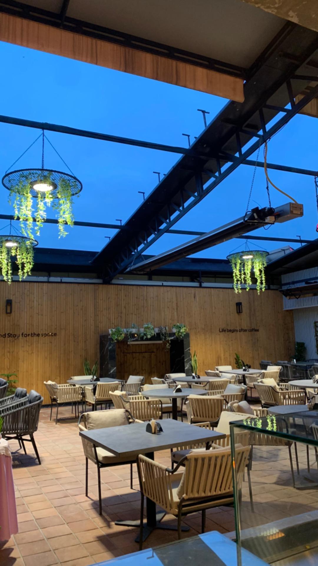 محیط روباز این کافه رستوران فری اسموک می باشد و دارای دیزاین خاص و چشمگیر است.