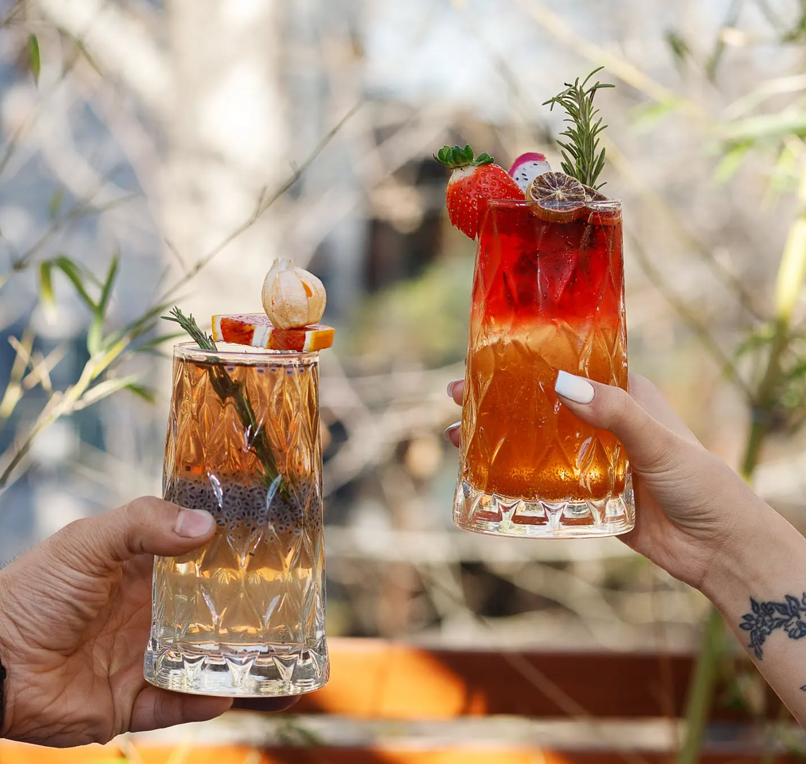 محیط روباز میامی، دارای گیاهان سرسبز و آلاچیق های دنج با نور پردازی جذاب است.