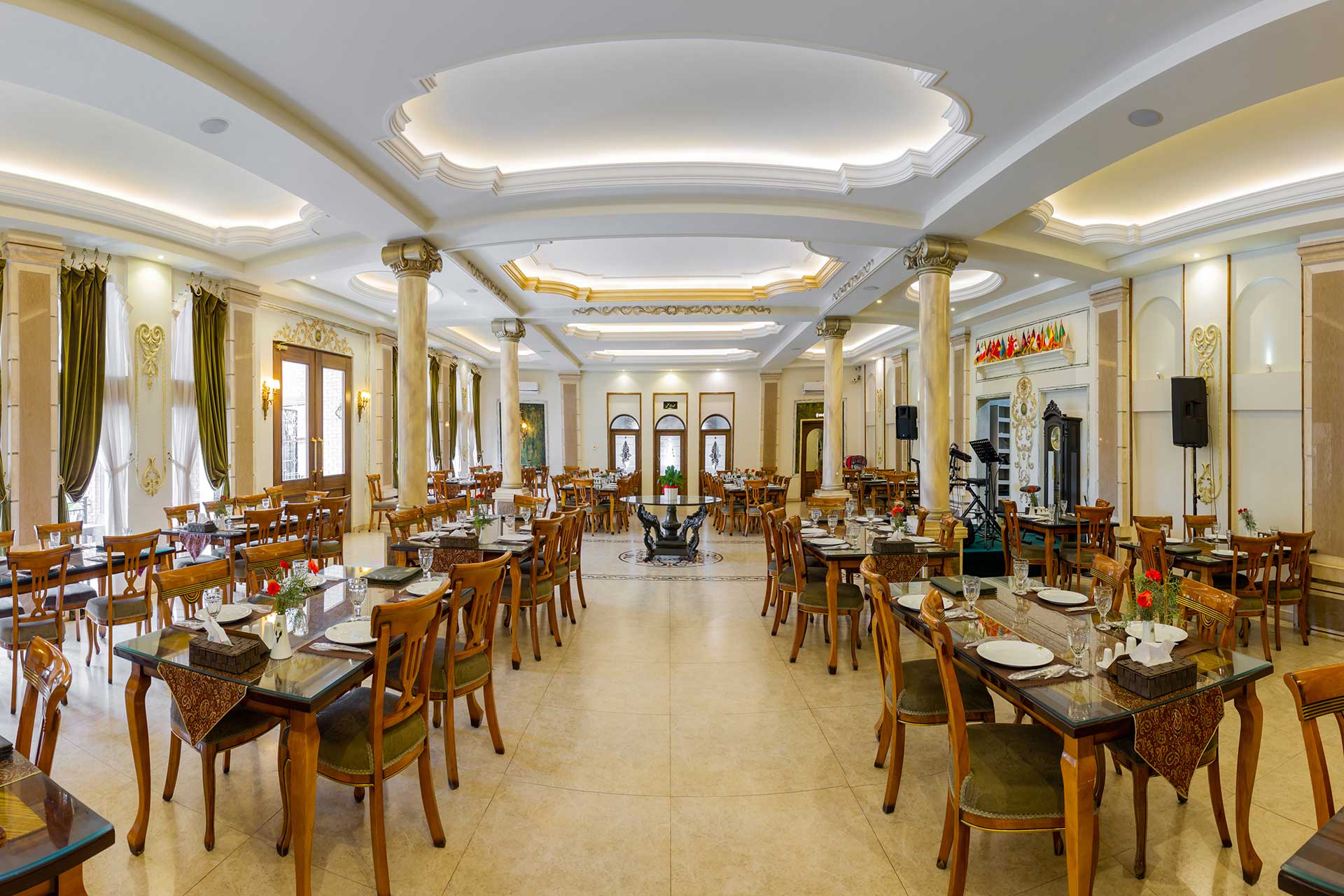 این رستوران دارای 3 فاز است که شامل رستوران، هتل و تالار است.